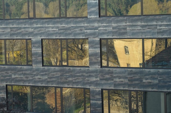 (like in the picture above of the reflection of an ancient structure in the windows of a modern Vilnius business complex)